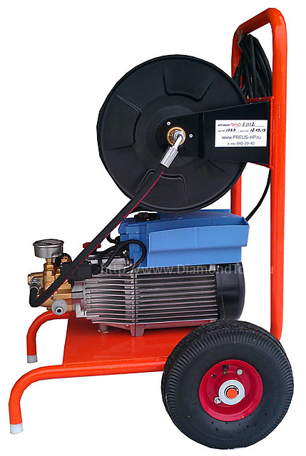 Аппарат для прочистки труб диаметром до 200 мм при помощи струи высокого давления. Электрический двигатель мощностью 2.2 кВт создает максимальное рабочее давление 110 бар. Длина шланга на обмотке составляет 40 метров. Кроме прочистки труб аппарат используется для мойки, очистки и дизинфекции различных поверхностей.